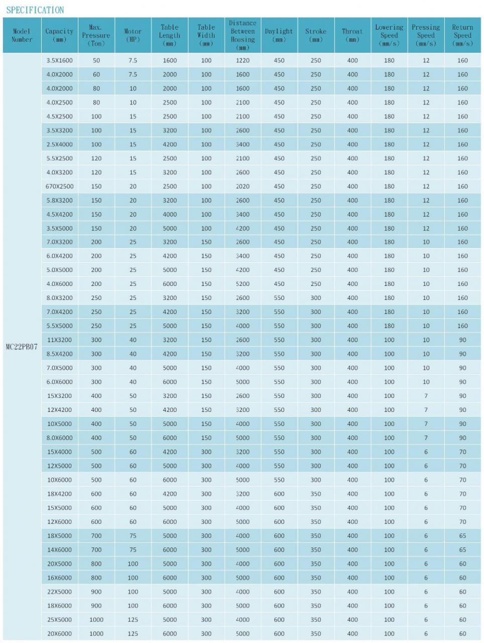 | Número d'article | MC22PB07 | Poder | Hidràulica |